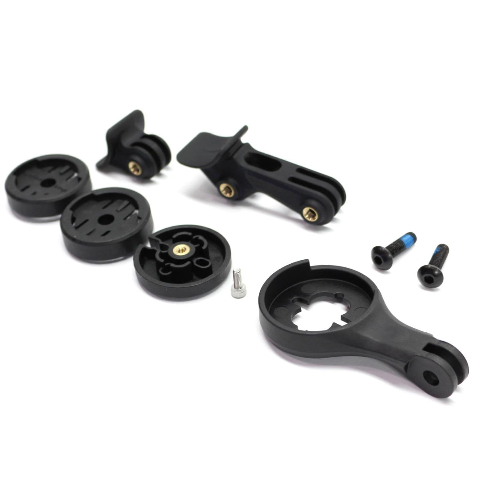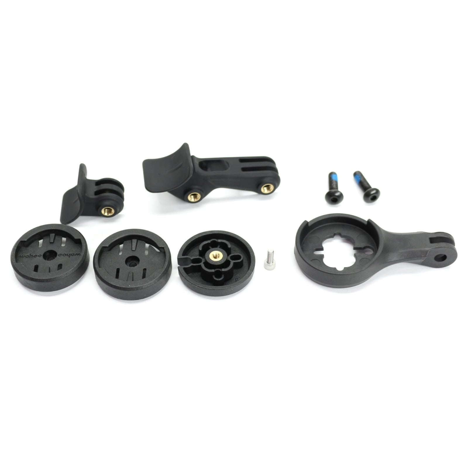 Kit includes one short stem mount for one accessory, one long stem mount for two accessories, cycling computer mount for both Garmin and Wahoo, and mounting bolts.