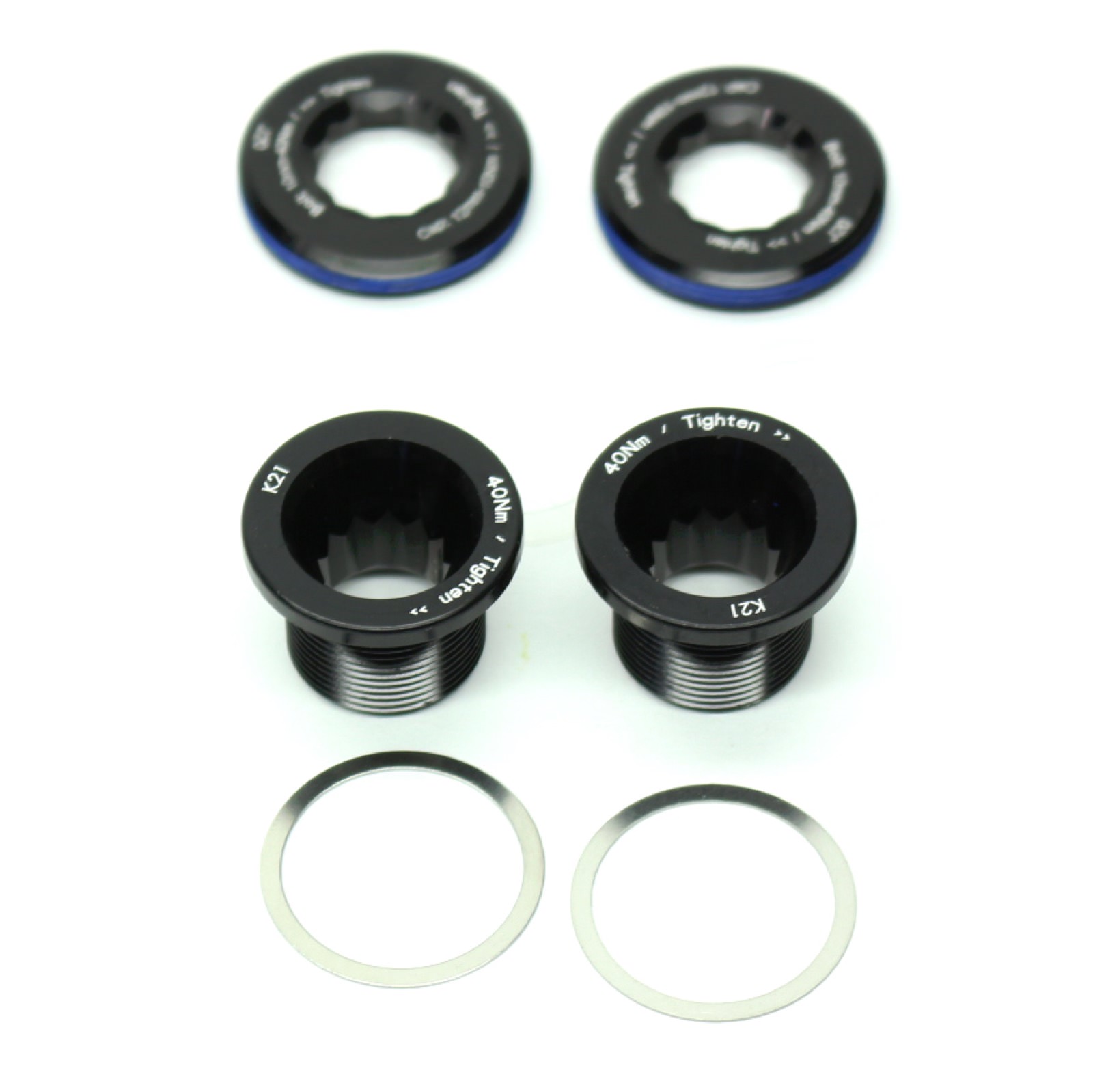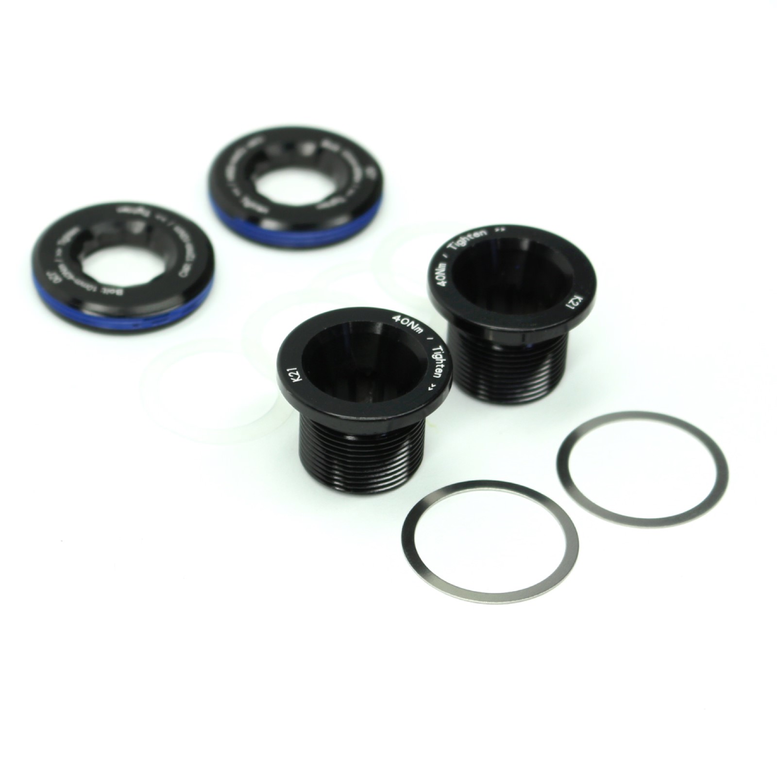 Kit includes two threaded caps, four plastic shims, two bolts, and two steel washers.