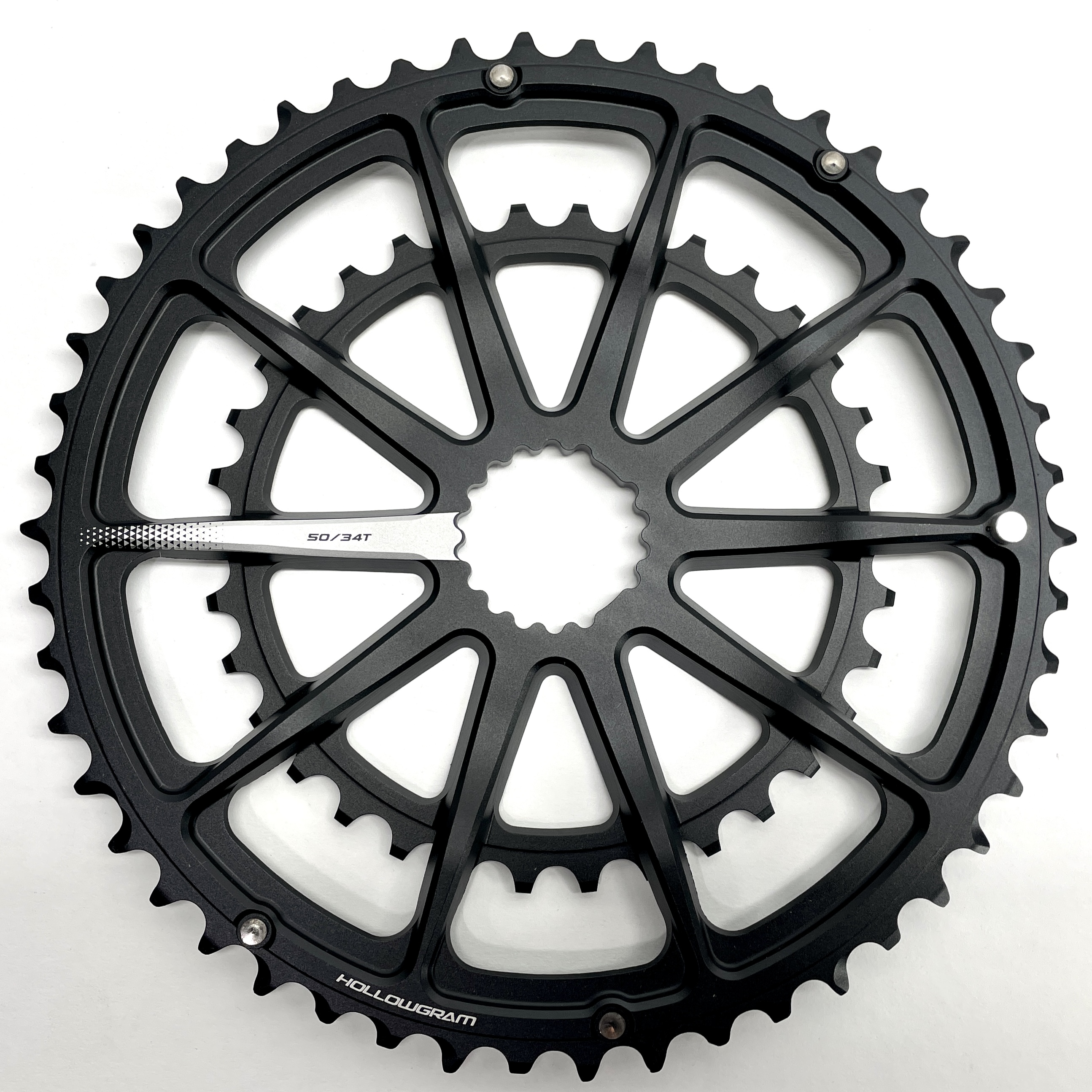 Cannondale's new SpideRing is a one-piece combination of spider and chainring, improving chainring stiffness that improves shifting performance. Weighing in at just 175 grams (standard 53/39T configuration), this is a piece of art. The SpideRing is standard on the new 2013 Hollowgram SiSL2 cranksets, but is backward compatible with virtually all Hollowgram cranksets. Cannondale's One Piece Integration concept reduces the number of parts which improves performance in a simpler system.