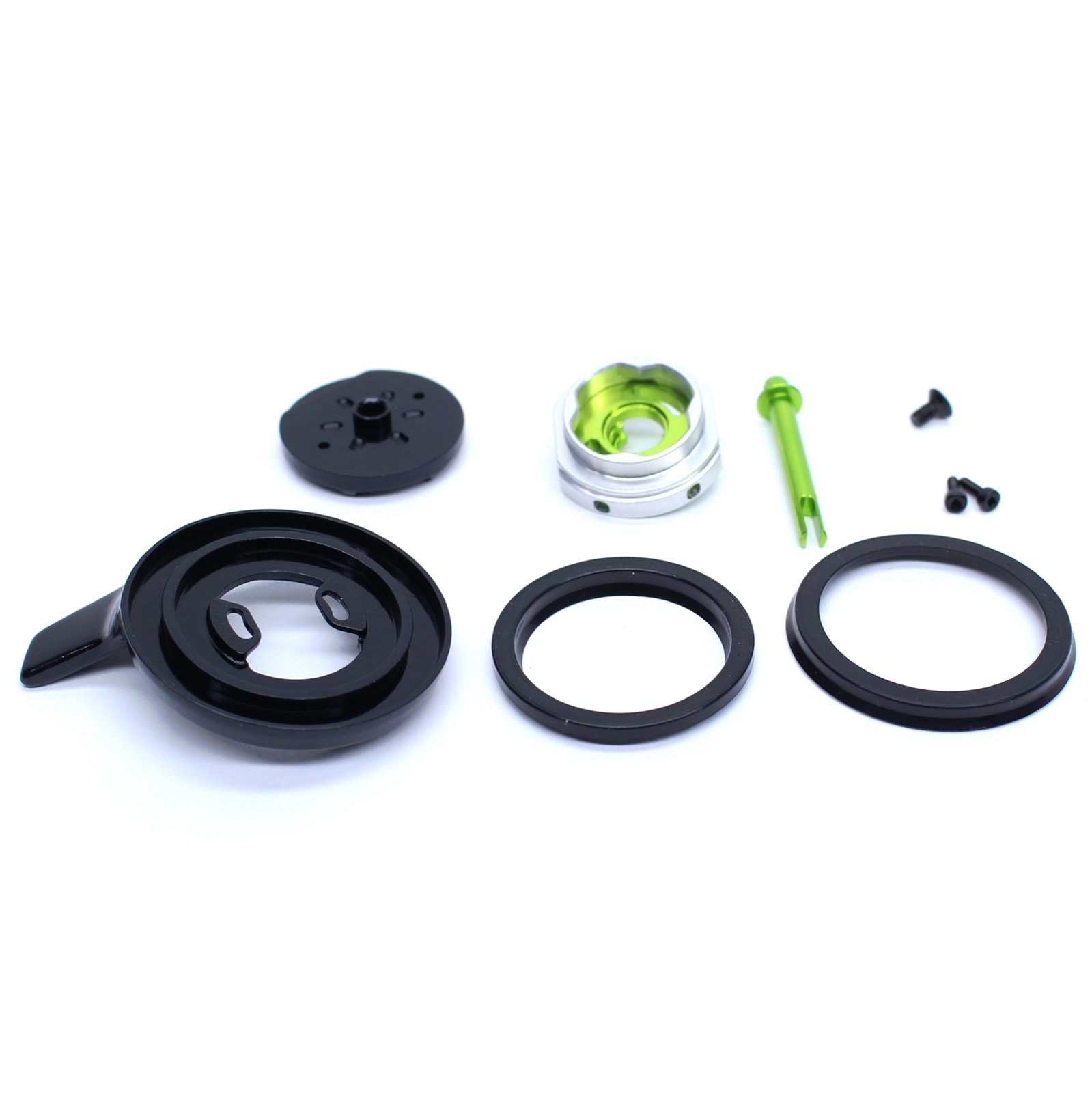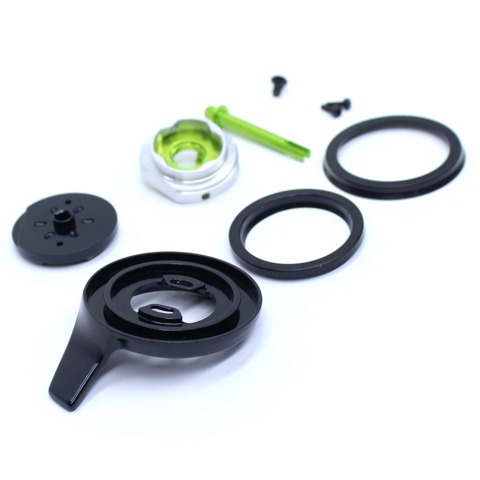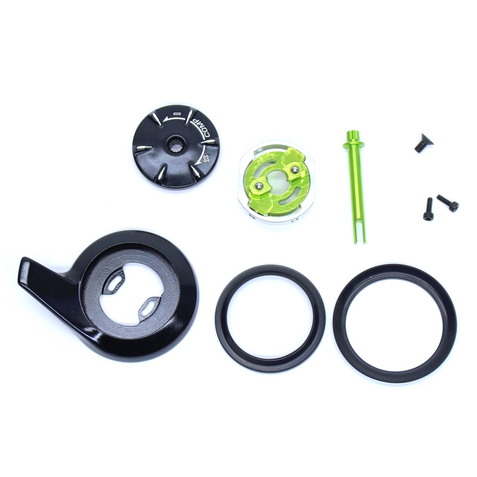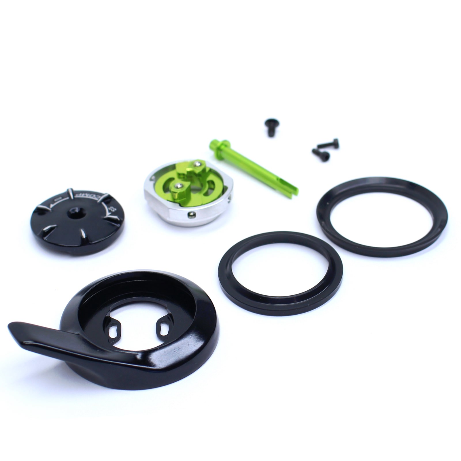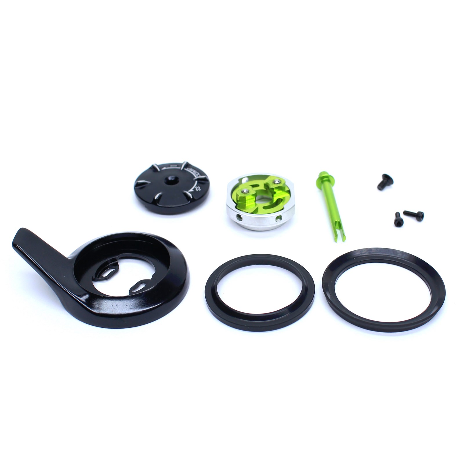 Kit includes lockout lever, compression adjustment knob, seals, and fastening screws as shown.